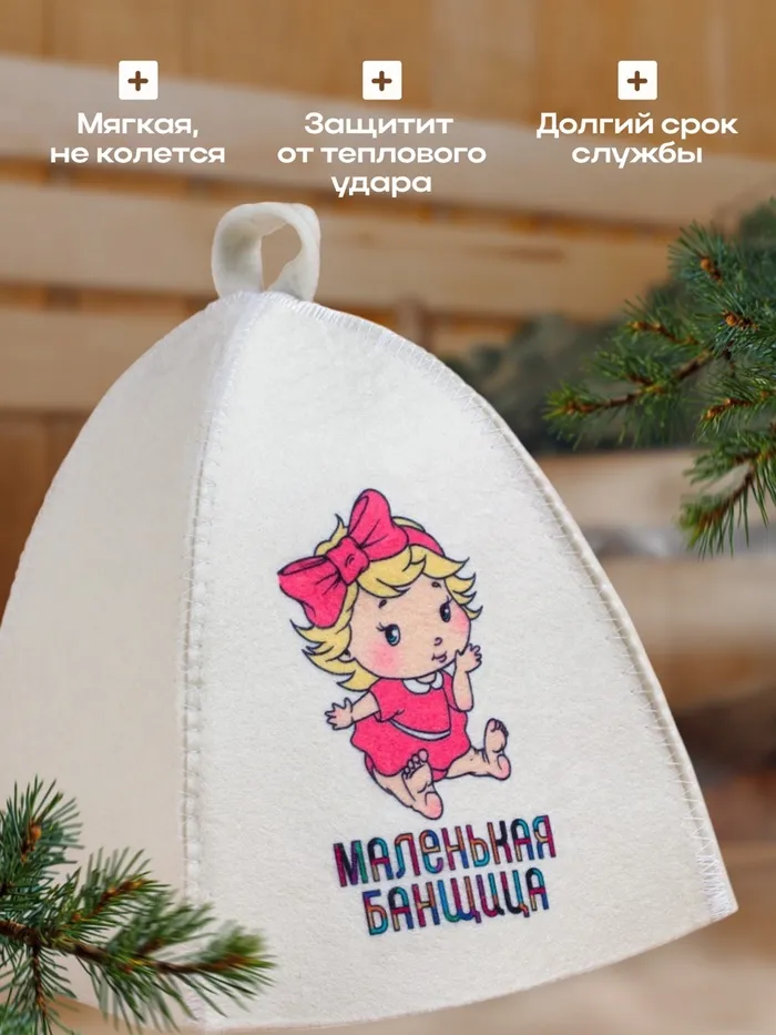 Шапка для бани с детским принтом "Маленькая банщица" — Характеристики