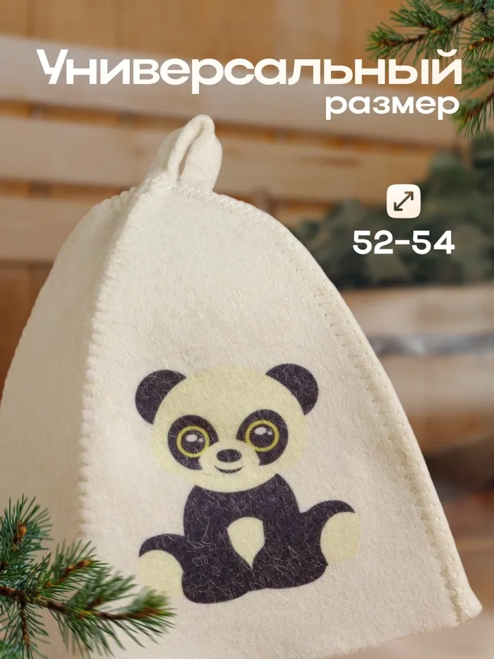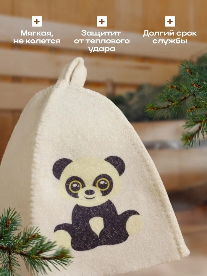 Шапка для бани с детским принтом "Панда" , белая — Характеристики