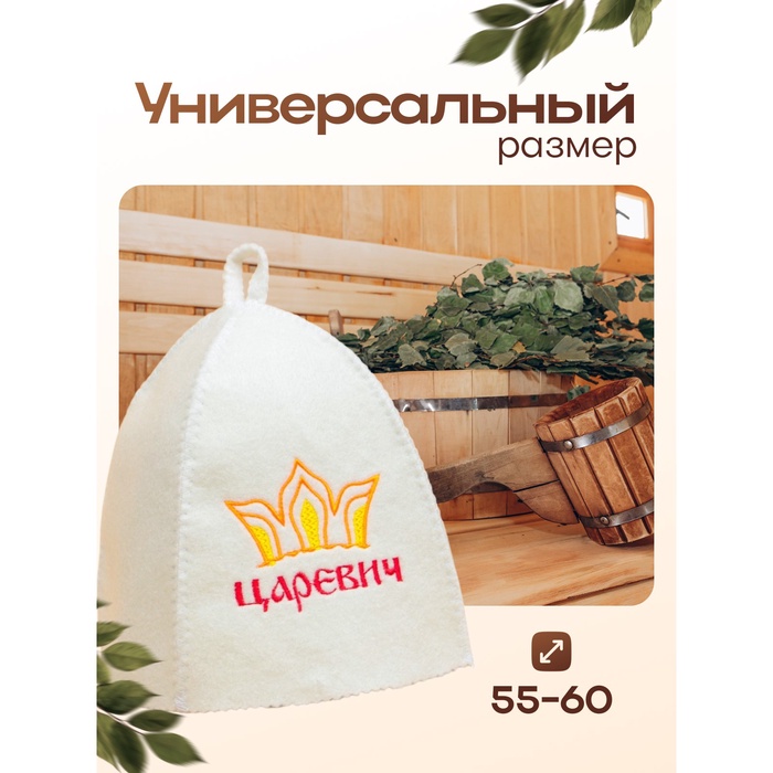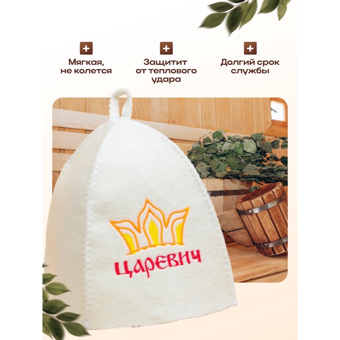Шапка для бани с детской вышивкой "Царевич", белая, войлок — Характеристики