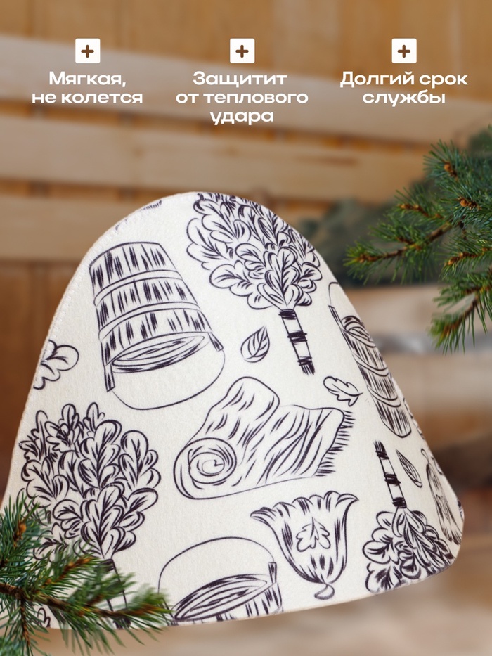Шапка для бани с принтом "Банный отдых" — Характеристики