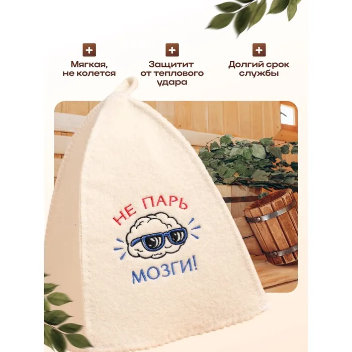 Шапка для бани с вышивкой "Не парь мозги", первый сорт — Характеристики