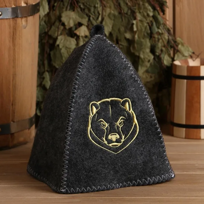 Шапка для бани серая с вышивкой "Медведь" — Характеристики