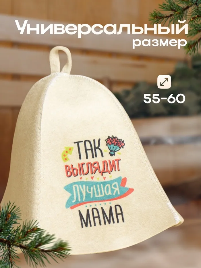 Шапка для бани "Так выглядит лучшая Мама" с принтом, белая — Характеристики