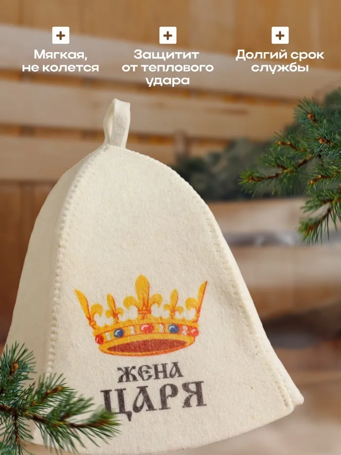 Шапка для бани "Жена Царя" с принтом, белая — Характеристики