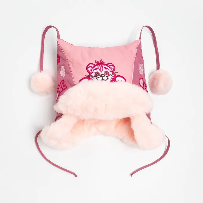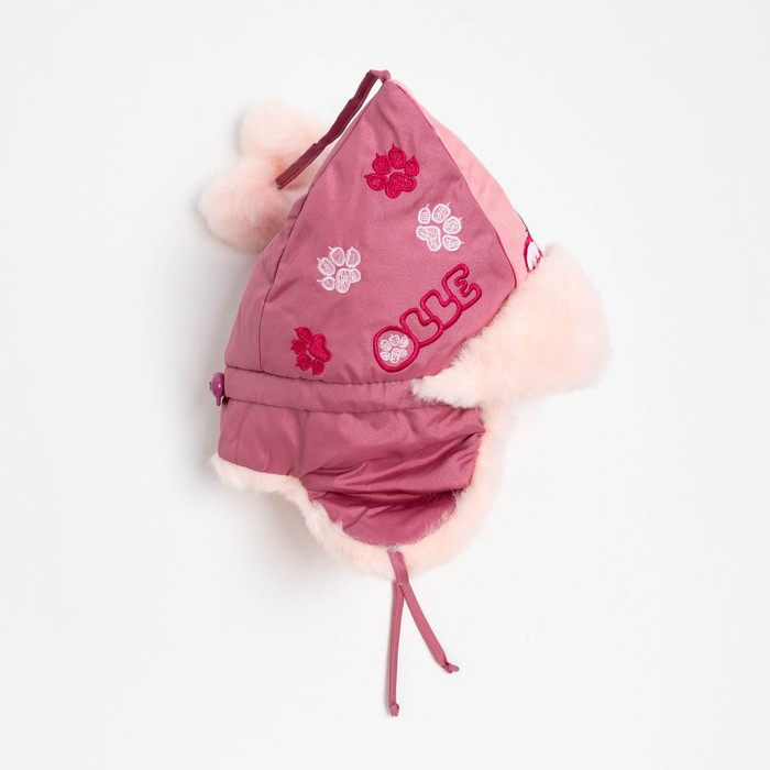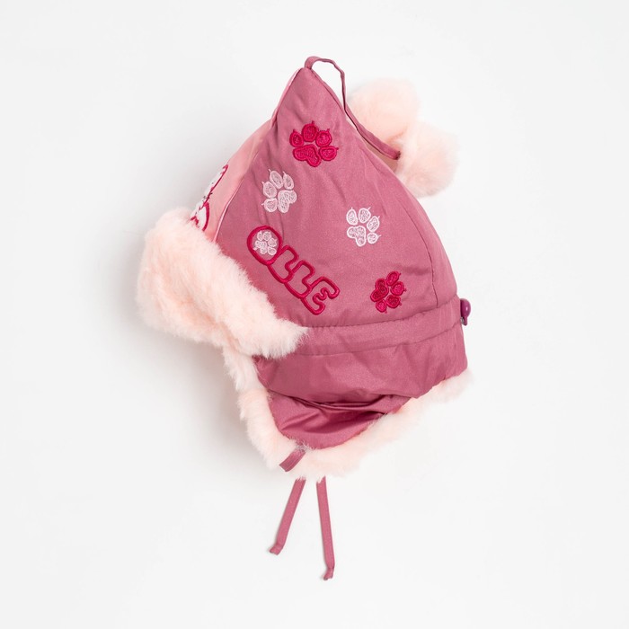 Шапка для девочки "Бом с вышивкой" , цвет брусника/светло-розовый, размер 48 — Характеристики