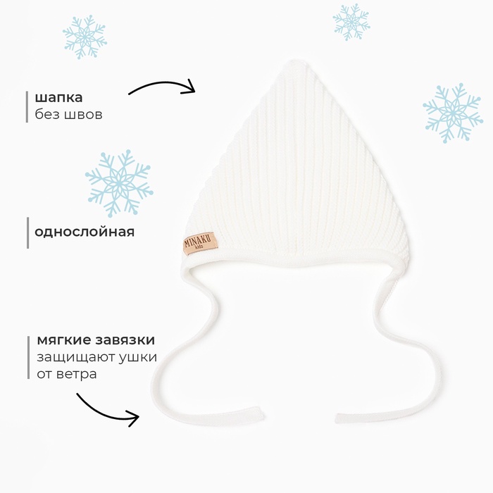 Шапка вязаная детская MINAKU, цвет белый, размер 40-42