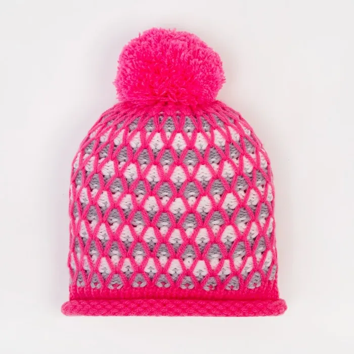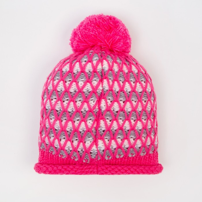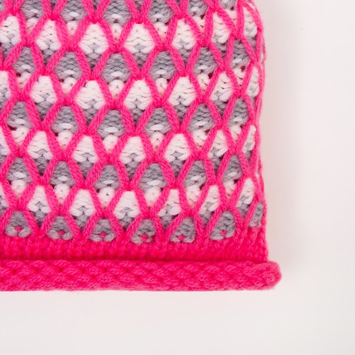 Шапка для девочки, цвет ярко-розовый/светло-серый, размер 52-54 — Характеристики