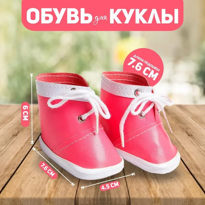 Ботинки для куклы «Завязки», длина подошвы: 7.6 см, 1 пара, розовые