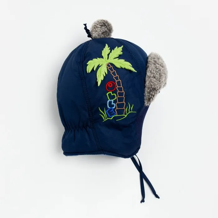 Шапка "Пингви" для мальчика, цвет синий, размер 46