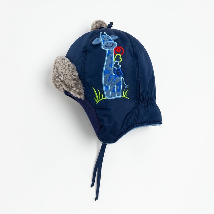 Шапка для мальчика «Жираф», цвет синий, размер 48