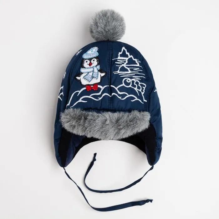 Шапка "Пингви" для мальчика, цвет синий, размер 44