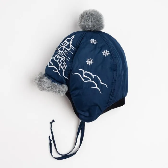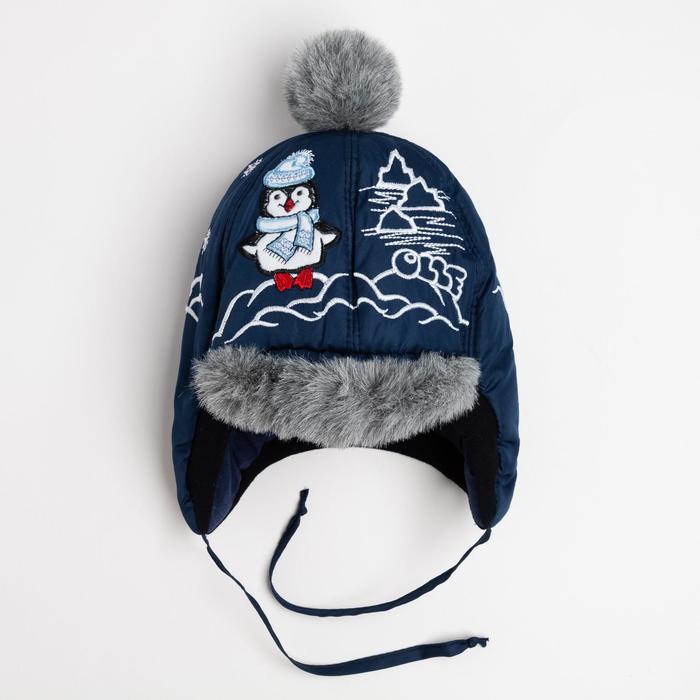 Шапка "Пингви" для мальчика, цвет синий, размер 46