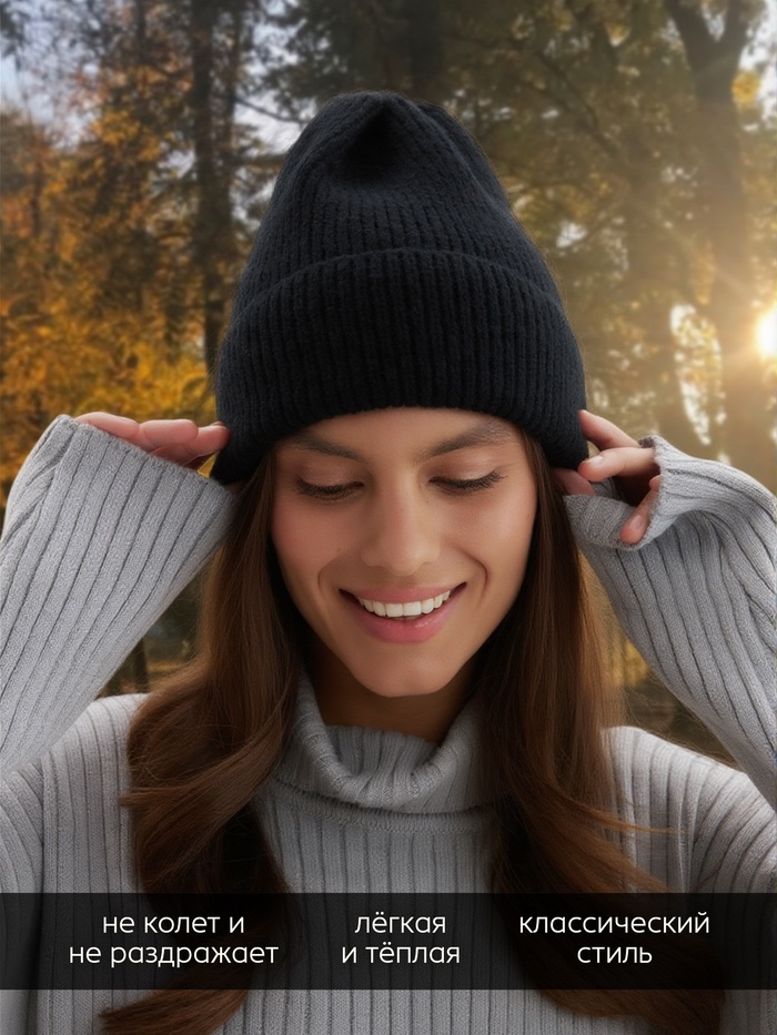 - Классический черный цвет: Универсальный черный цвет идеально сочетается с любой одеждой, делая эту шапку незаменимой в вашем гардеробе.