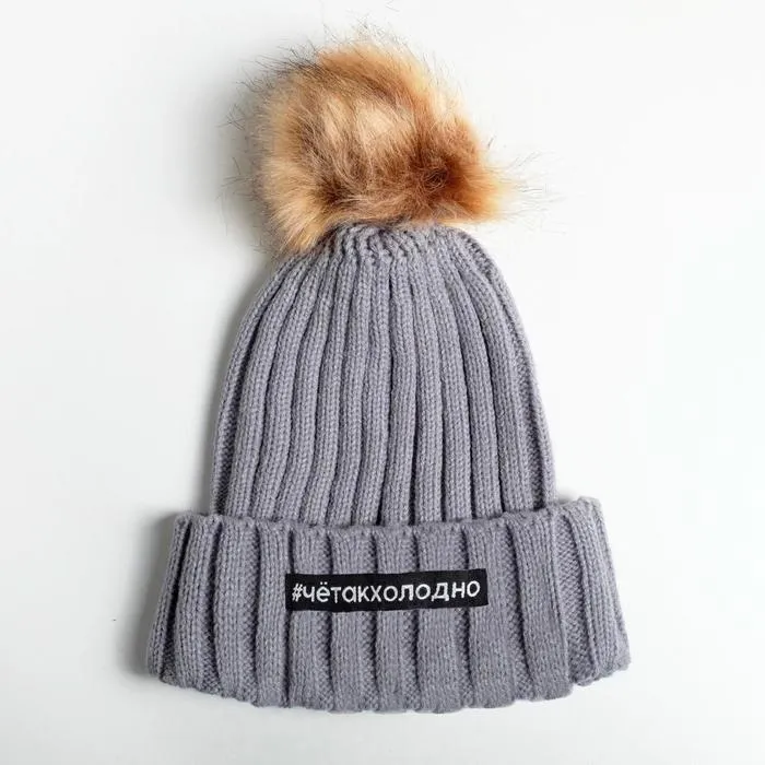 Шапка с помпоном «Че так холодно», серая — Характеристики