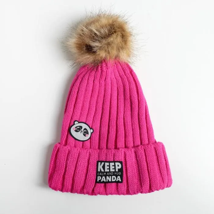Шапка с помпоном Keep calm, розовая — Характеристики