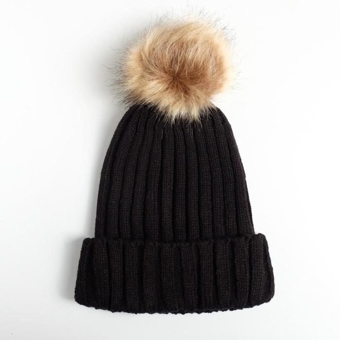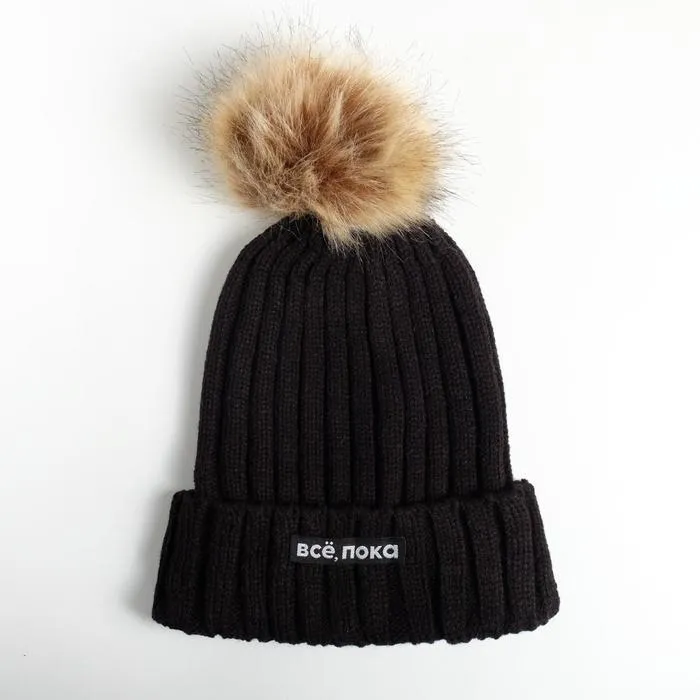 Шапка с помпоном «Все, пока», черная