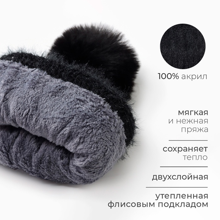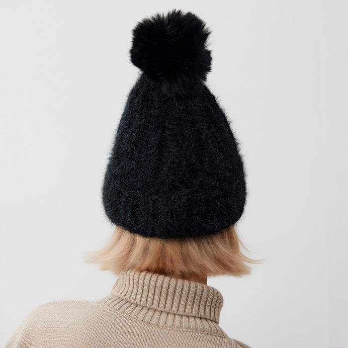Шапка с помпоном женская MINAKU, чёрная, размер 56-58 — Характеристики