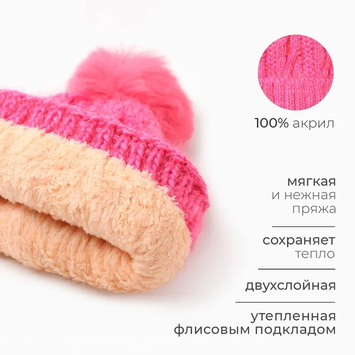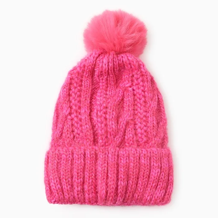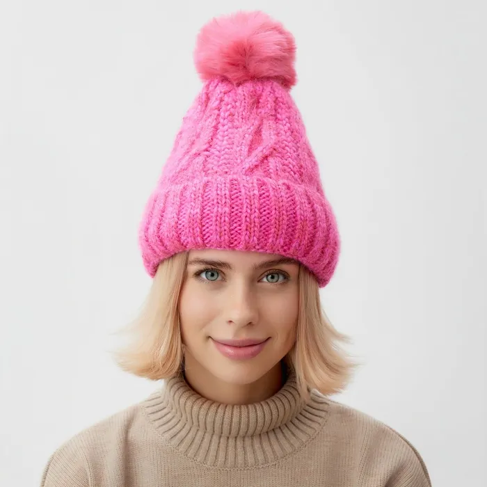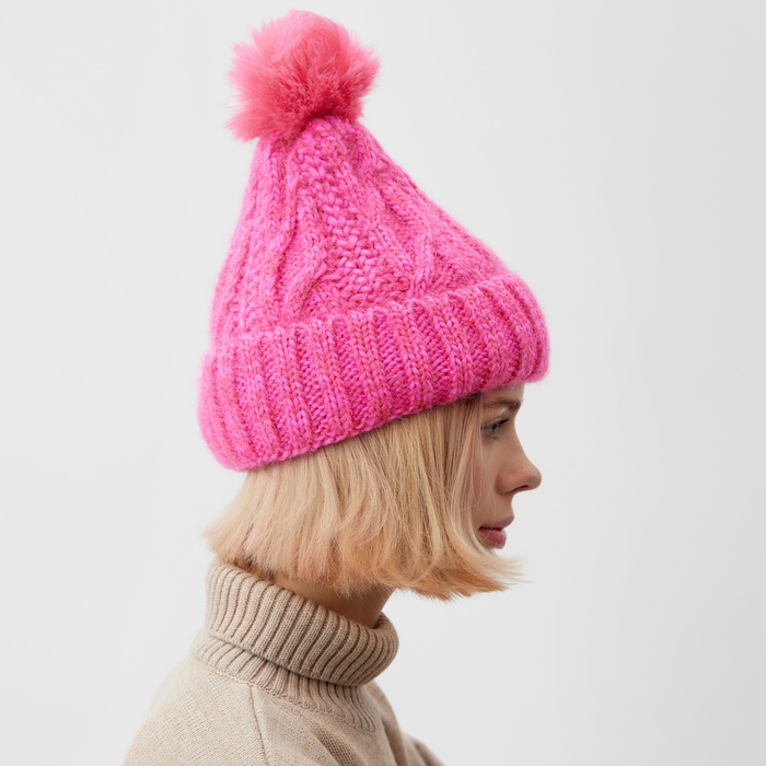 Шапка с помпоном женская MINAKU, розовая, размер 56-58 — Характеристики