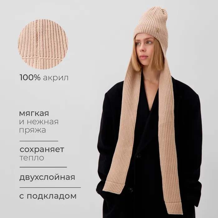 Шапка-шарф MINAKU, р-р 56-58, цвет кремовый — Характеристики