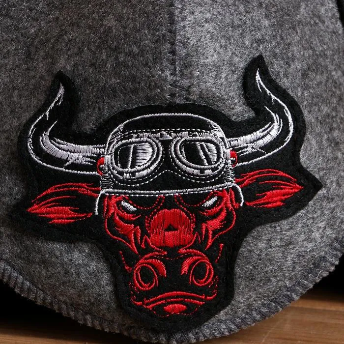 Шапка - шлем викинга для бани и сауны «Бык-байкер», фетр, «Добропаровъ»
