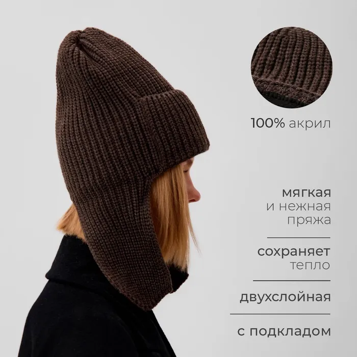 Шапка-ушанка MINAKU, р-р 56-58, цвет кофейный — Характеристики