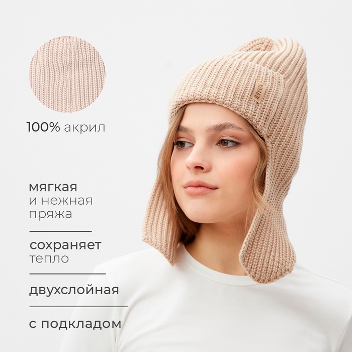 Шапка-ушанка MINAKU, р-р 56-58, цвет кремовый — Характеристики
