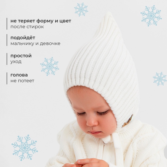 Шапка вязаная детская MINAKU, цвет белый, размер 40-42 — Характеристики