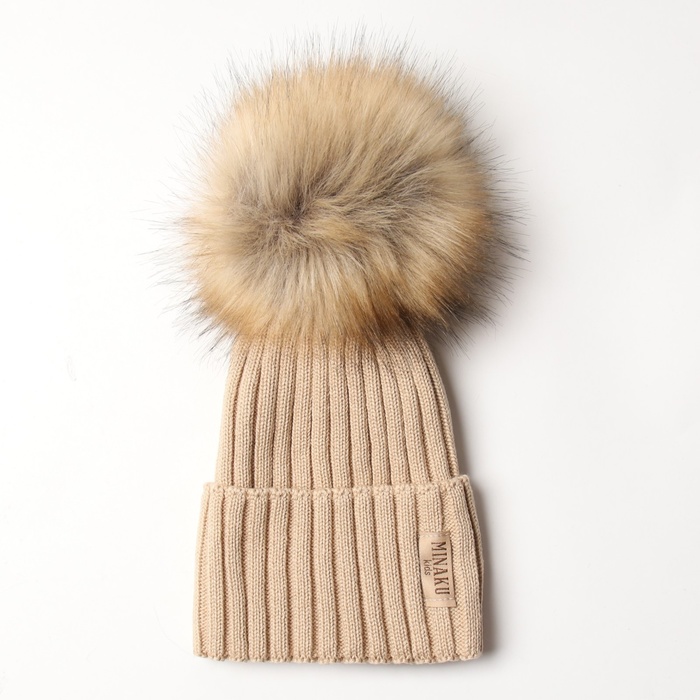 Шапка женская MINAKU с подворотом, размер 54-56, цвет бежевый