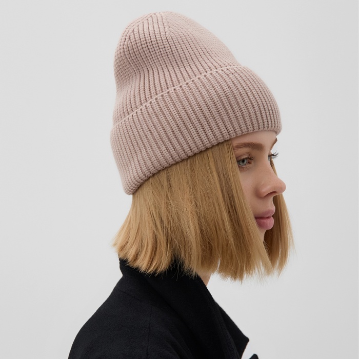 Шапка женская MINAKU с подворотом, размер 54-56, цвет бежевый — Характеристики