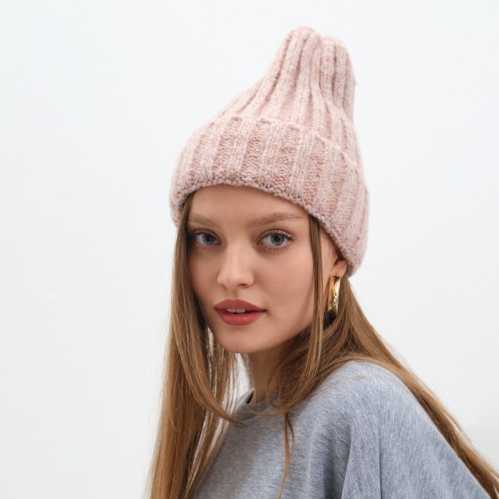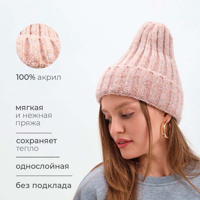 Шапка женская MINAKU с подворотом, размер 54-56, цвет розовый — Характеристики
