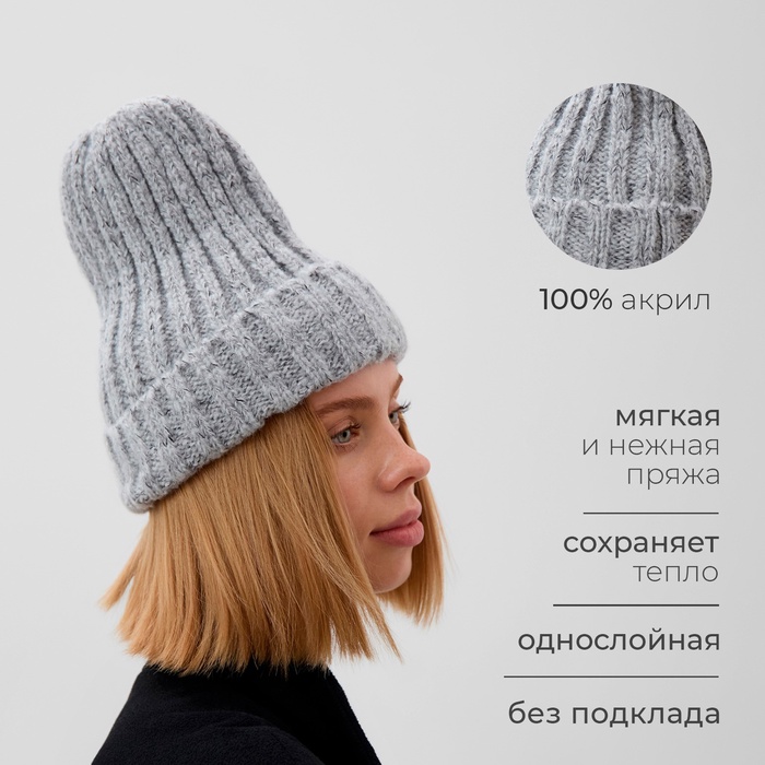 Шапка женская MINAKU с подворотом, размер 54-56, цвет серый — Характеристики