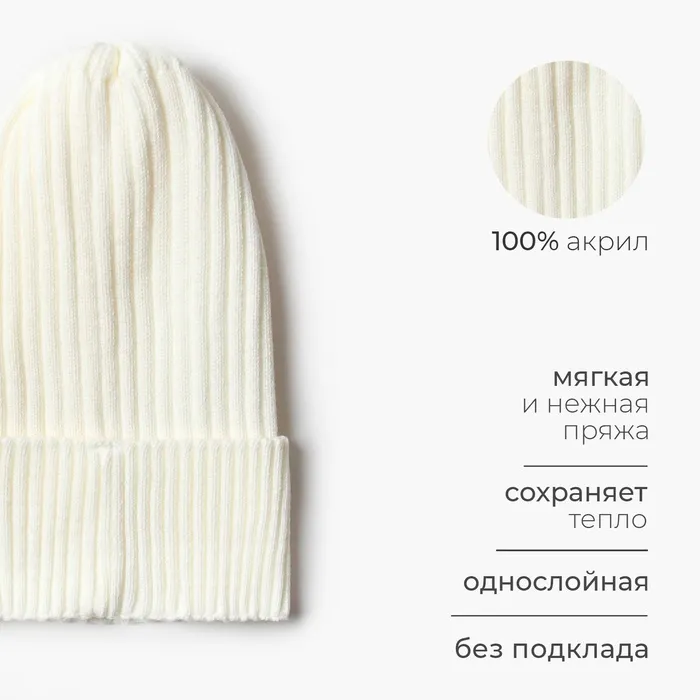 Шапка женская MINAKU "Трюфель" цвет молочный, размер 54-56 — Характеристики