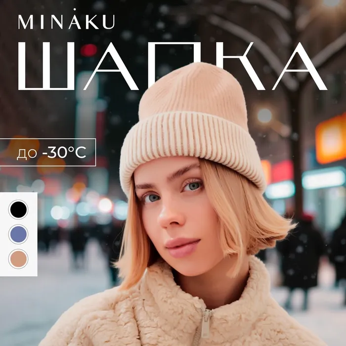 Шапка женская MINAKU, цвет бежевый, размер 56-58 — Характеристики
