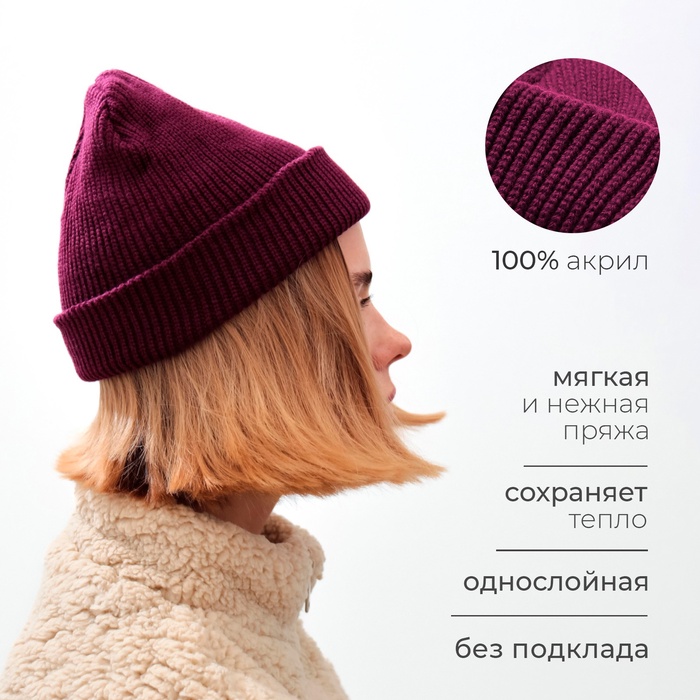 Шапка женская MINAKU, цвет бордовый, р-р 56-58 — Характеристики