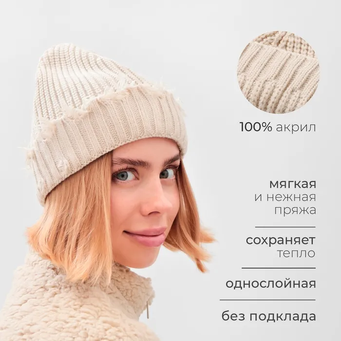 Шапка женская MINAKU, цвет молочный, р-р 56-58 — Характеристики