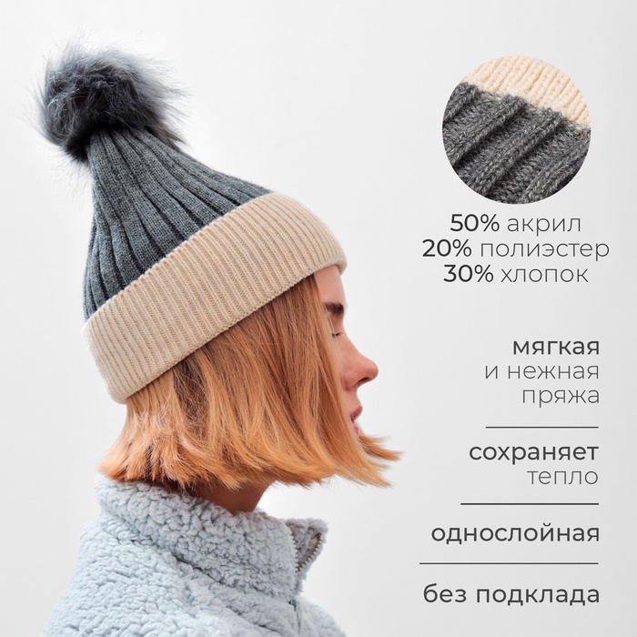Шапка женская MINAKU, цвет серый, размер 58-60 — Характеристики