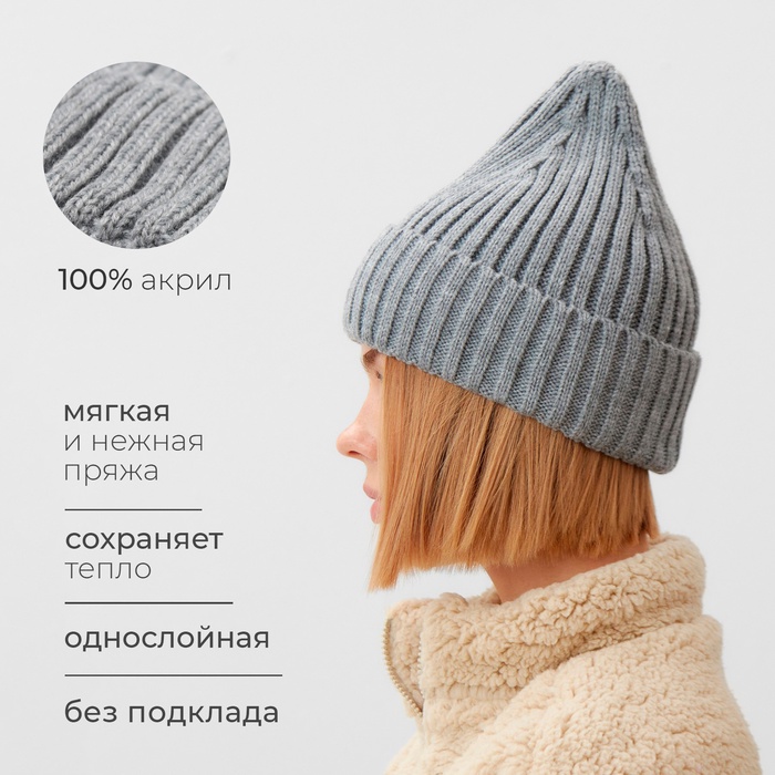 Шапка женская MINAKU, цвет светло-серый, 56-58 р-р — Характеристики