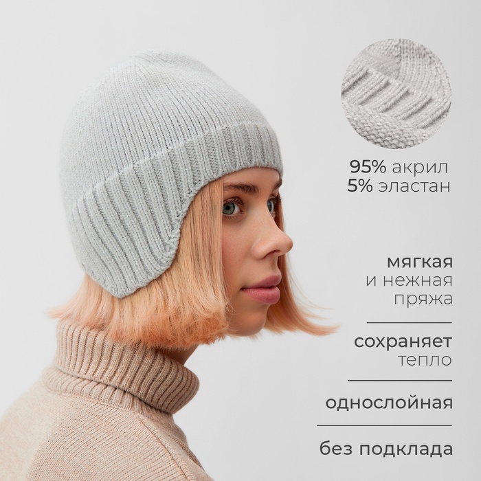Шапка женская MINAKU, цвет светло-серый, р-р 56-58 — Характеристики