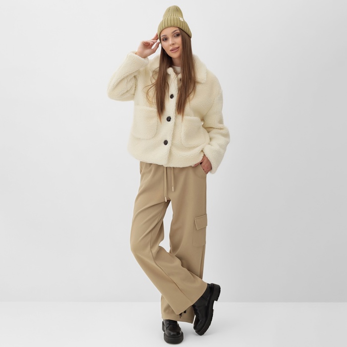 Шапка женская MINAKU с отворотом, размер 54-56, цвет экрю