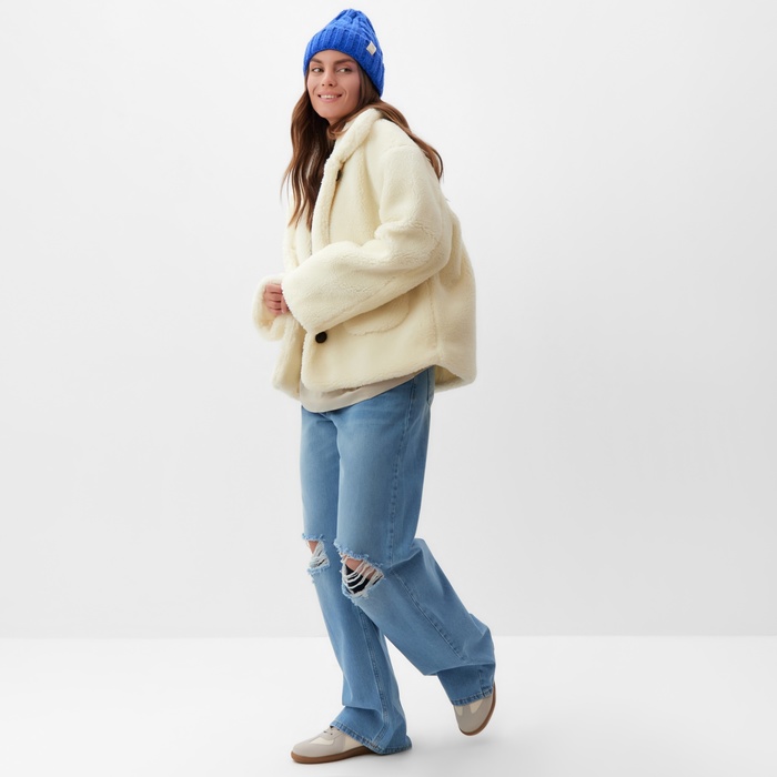 Шапка женская MINAKU с отворотом, размер 54-56, цвет экрю