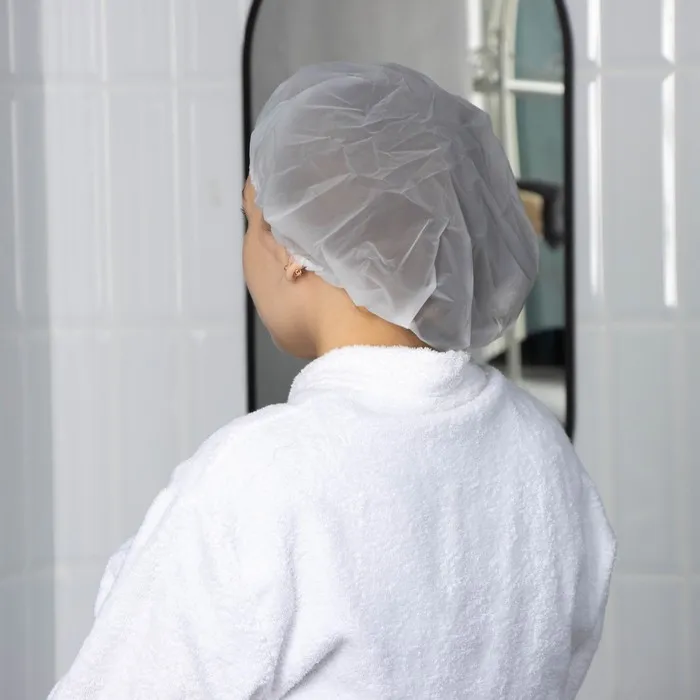 Шапочка для душа изготовлена из качественного полиэстера, который обеспечивает долговечность и износостойкость изделия.