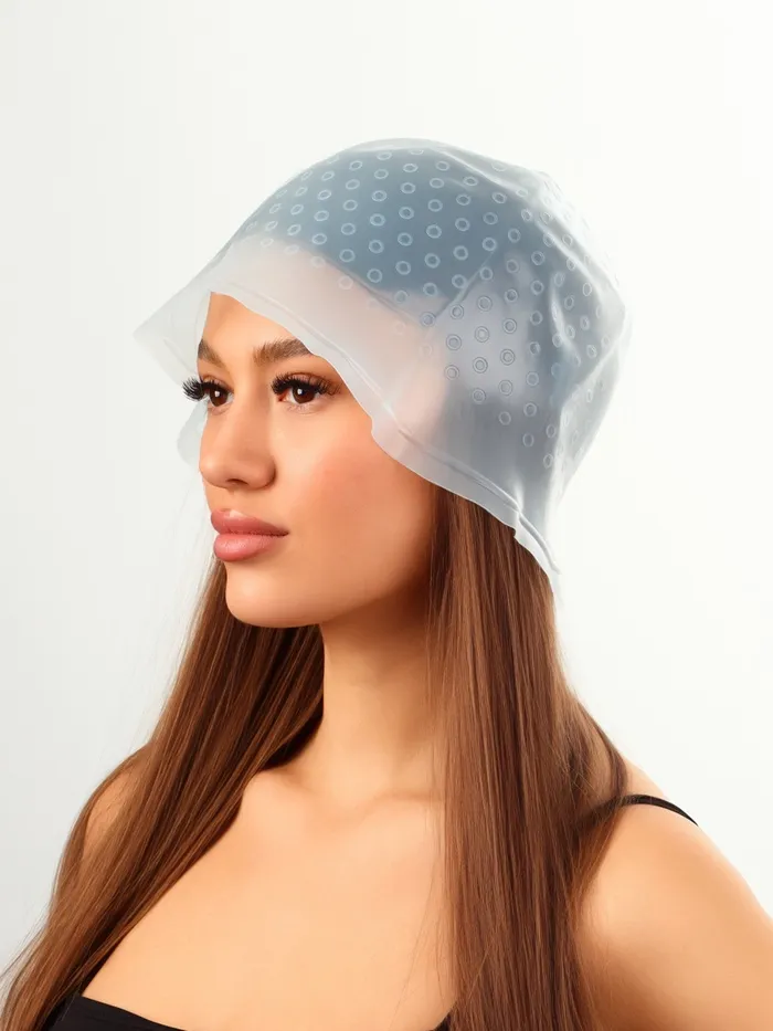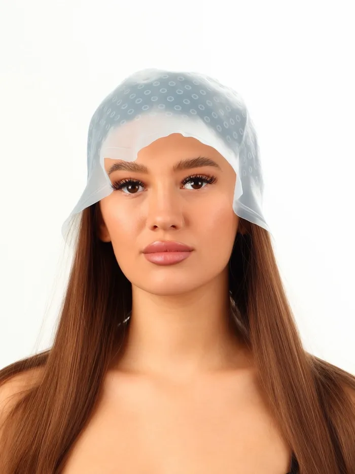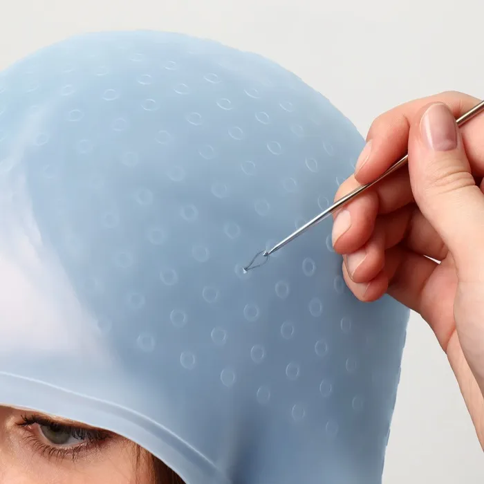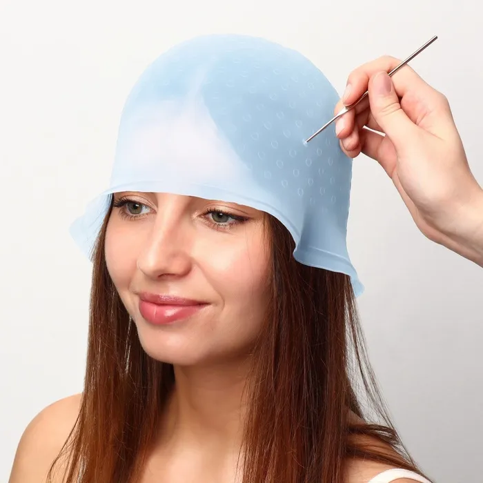 Используйте набор для мелирования, чтобы покрасить отдельные пряди. Шапочка надевается на голову, локоны достаются наружу через отверстия с помощью крючка. Затем на них наносится средство: волосы под шапочкой остаются нетронутыми. Смойте состав и только потом снимайте шапку.