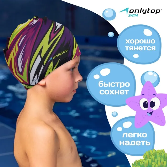 Шапочка для плавания детская ONLYTOP Action, тканевая, обхват 46-52 см
