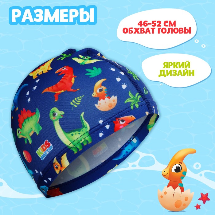 Шапочка для плавания детская ONLYTOP «Динозаврики», тканевая, обхват 46-52 см — Характеристики