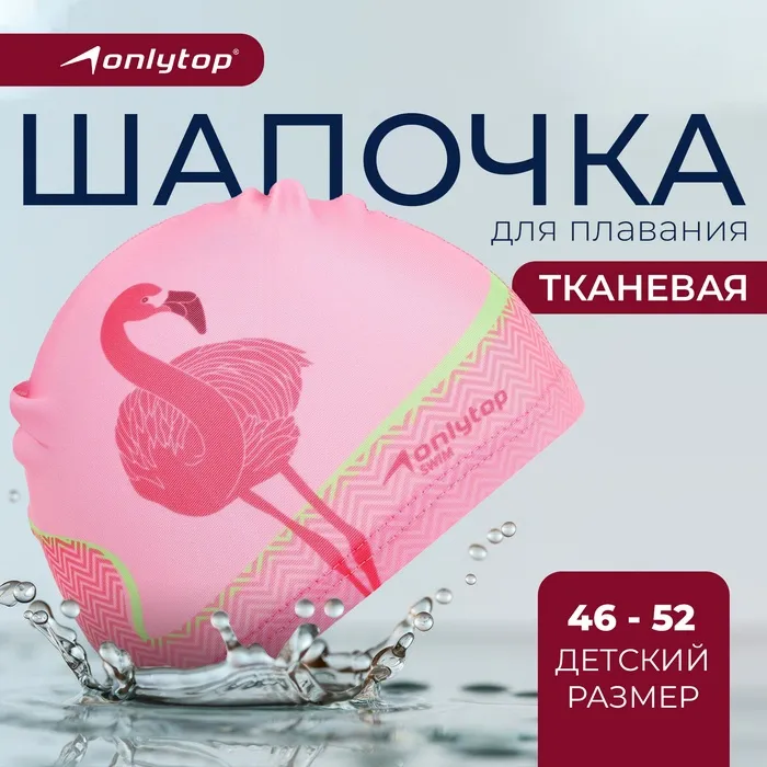 Шапочка для плавания детская ONLYTOP «Фламинго», тканевая, обхват 46-52 см — Характеристики
