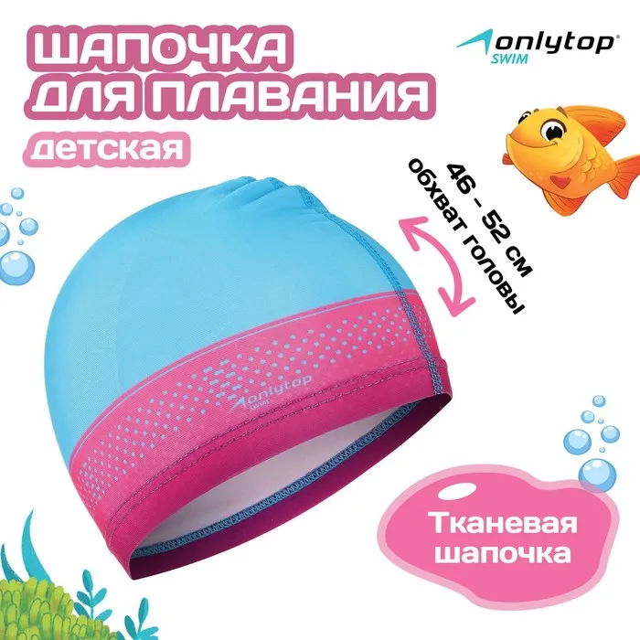 Шапочка для плавания детская ONLYTOP Swim, тканевая, обхват 46-52 см — Характеристики
