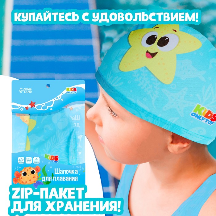Шапочка для плавания детская ONLYTOP «Весёлое купание», тканевая, обхват 46-52 см — Характеристики
