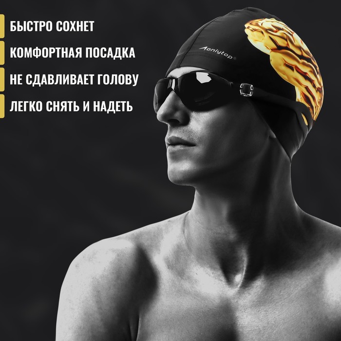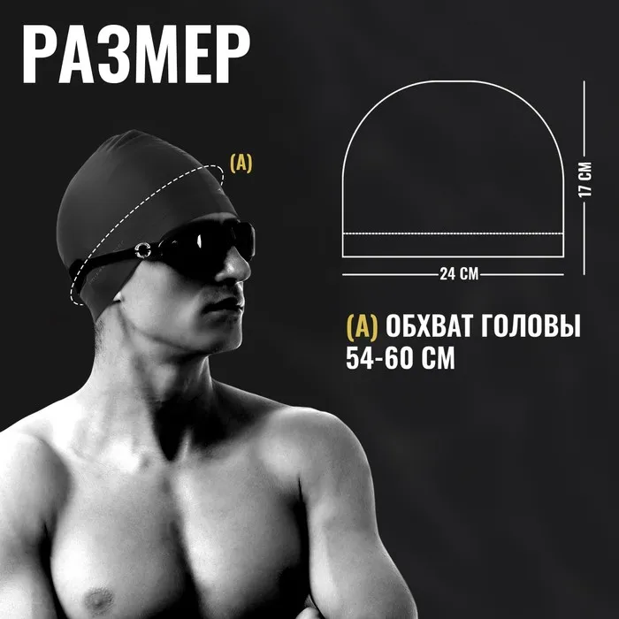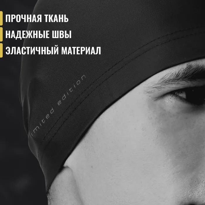 Шапочка для плавания взрослая ONLYTOP, тканевая, обхват 54-60 см, цвет чёрный — Характеристики