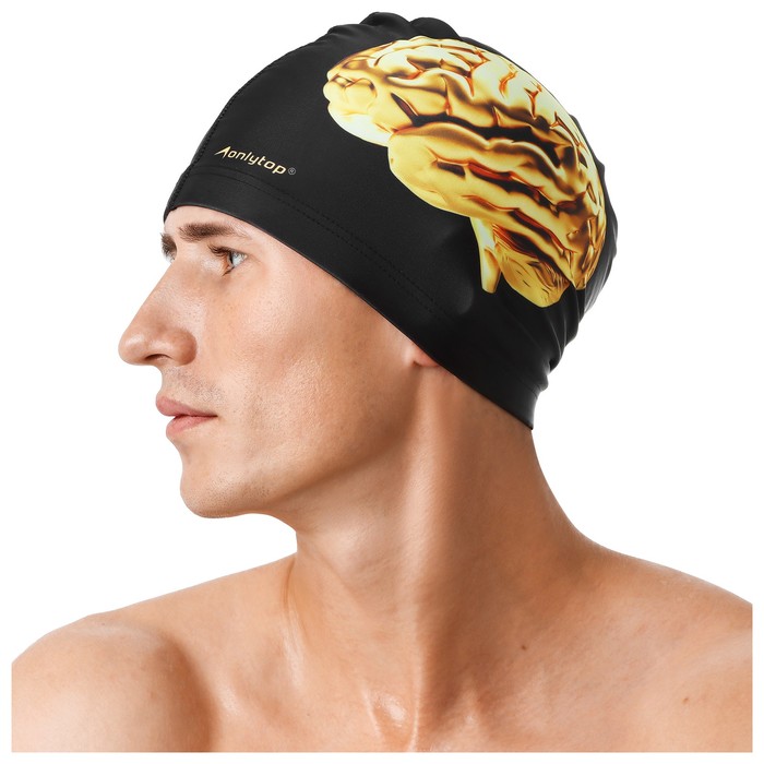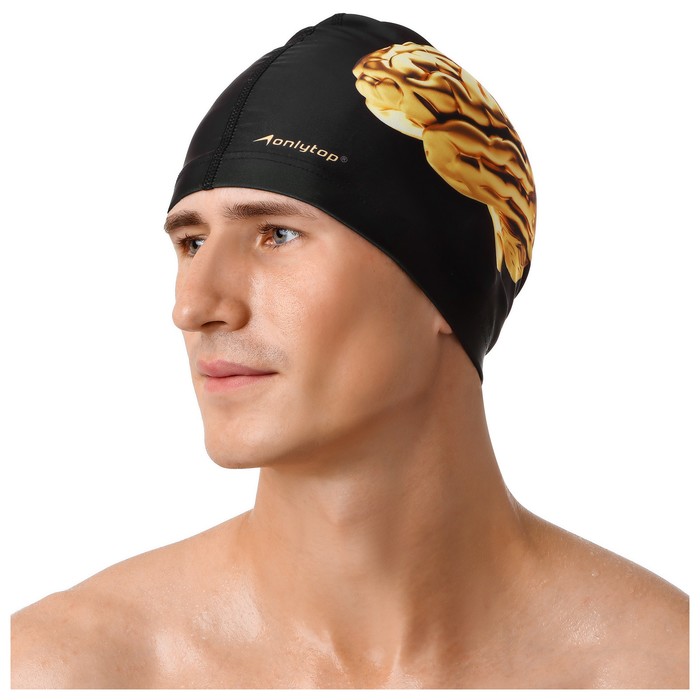Шапочка для плавания взрослая ONLYTOP, тканевая, обхват 54-60 см, цвет чёрный