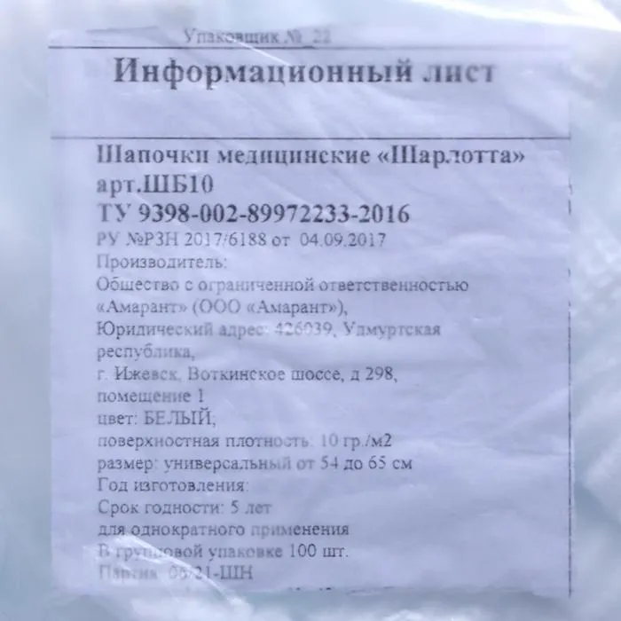 Шапочка одноразовая,оснащена мягкой резинкой, которая не сдавливает, но при этом надежно фиксирует шапочку на голове. Удобна даже при длительном ношении.